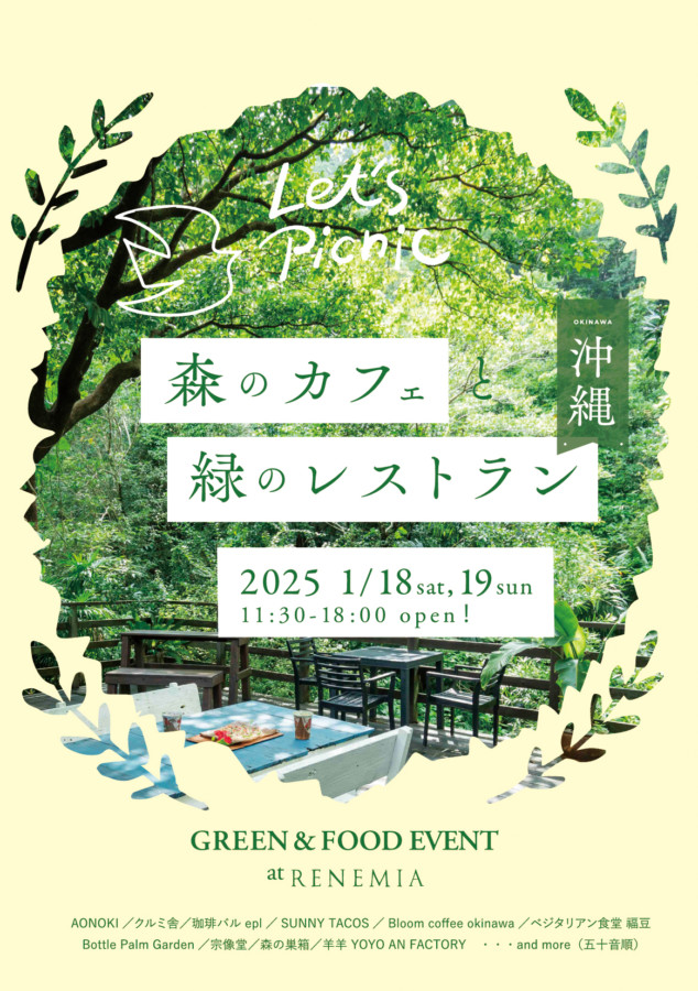 ぴあMOOK「森のカフェと緑のレストラン 沖縄」の人気店が、新春、那覇牧志駅近くのレネミア に集結します。